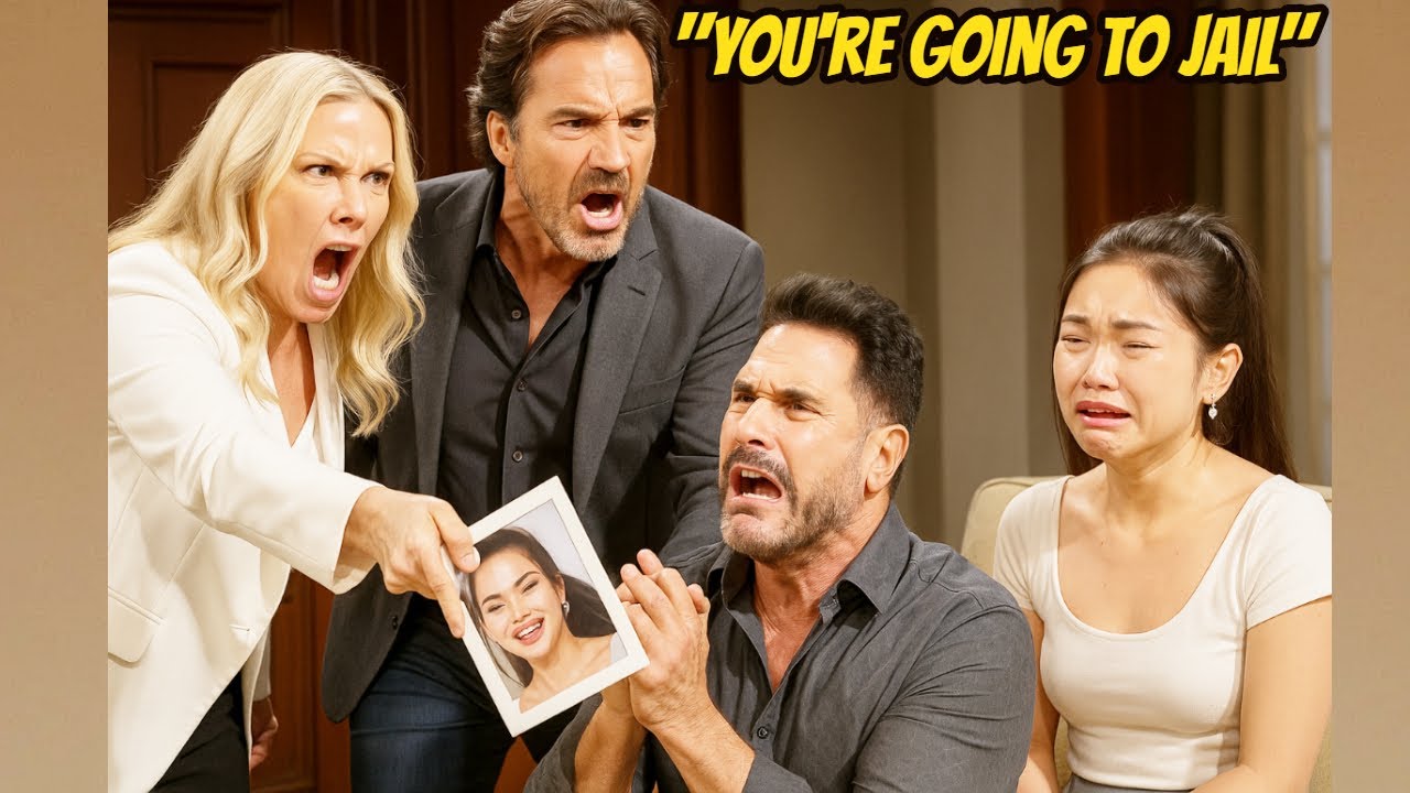 Brooke’s words cut like steel. She points at Bill, her voice shaking with righteous indignation: “You’re going to jail!” The accusation reverberates through the hushed room, every head turning. The phrase carries more than anger — it carries the weight of betrayal, legal danger, and a primed explosion of familial upheaval.